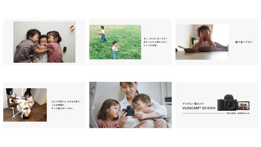 ソニーマーケティング株式会社 (本社:東京都港区、代表取締役:川口大輔)は、本格的で多彩な映像表現を簡単操作で実現するAPS-Cミラーレス一眼カメラ『VLOGCAM(TM) ZV-E10 II』を8月2日(金)より発売いたします。それに伴い、親と子の日常に溢れるかけがえのない一瞬、その一つ一つを写真や動画で残すことの尊さをテーマにしたWebCMを公開。特に、撮影する瞬間の“母の感情”を丁寧に描く本作は、登場する作品の数々を、写真家の川島小鳥が撮影しました。