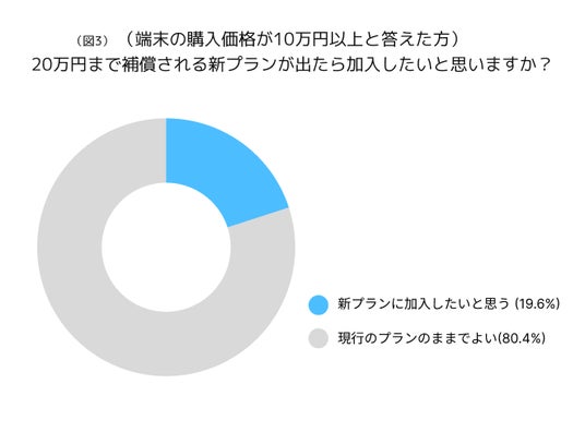 このような背景から、スマホ保険を提供するMysuranceに対して「端末価格が高額化しているのに保険金額10万円では不安だ」「10万円以上の保険金額設定が出来るとよい」といった声が多く寄せられています。また、ニーズ調査を目的とした既契約者向けのアンケートでは、10万円以上の端末を所有する方が全体の47.7%を占め、そのうち19.6%が20万円のプランに切り替えたい意向を示されています(図3)(※2)。そこで、お客さまの多様なニーズに応え、10万円以上の高額端末でも安心して長く使っていただけるよう、保険金額を20万円とする「プロプラン」の提供を開始しました。