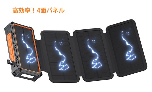 片手で簡単に開閉できる4面のソーラーパネルで素早く充電でき、キャンプ、野外BBQ、自転車乗り、停電など、さまざまなシーンで活躍します。防災グッズや避難グッズとしても、一台あれば安心です。