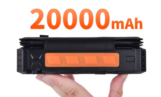 片手で持ち運べるコンパクトさでありながら、20000mAhの大容量バッテリーを搭載。飛行機への持ち込みも可能な規格※。外出先でバッテリー残量が不足してもソーラー充電と手回し充電が可能。スマホ、ノートPC、カメラ、ゲーム機など、さまざまな機器を充電切れの心配なく使えます