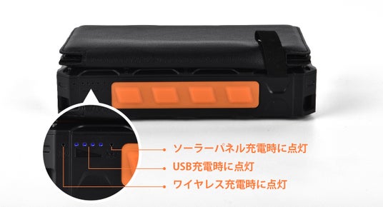 USB充電はもちろん、ソーラー充電やワイヤレス充電時には、インジケーターライトが点灯します。これにより、いつでも充電の状態を確認することができます。