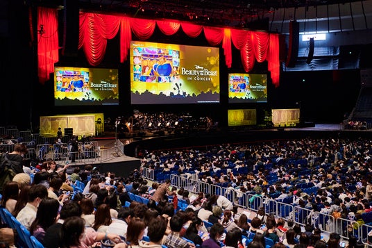 2020年に横浜アリーナで開催したディズニー・アニメーション映画『美女と野獣』では、アラン・メンケンとペイジ・オハラをスペシャル・ゲストに迎え、上白石萌音(ベル役)、山崎育三郎(野獣役)、山本耕史(ガストン役)、Wエンジン チャンカワイ(ル・フウ役)といったゲストが登場。約3万人を動員し、大好評を博しました。