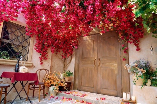 裏路地にあるレストランの上に咲き誇るブーゲンビリアをテーマにしています。壁から壁へと広がり、空を覆い尽くすようにせり出すブーゲンビリアの姿は、訪れる人々に圧倒的なインパクトを与えます。