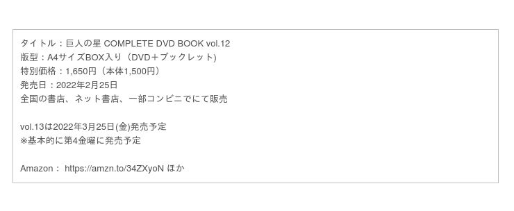 『巨人の星 COMPLETE DVD BOOK vol.12』ブックレット紹介