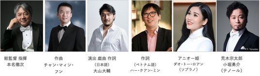 音楽は、作曲家チャン・マィン・フン氏が、オペラ楽曲をヴァイオリン、チェロ、クラリネット、コントラバス、ピアノによるアンサンブル楽曲に特別に編曲、総監督を務める本名徹次マエストロが指揮し、神奈川フィルハーモニー管弦楽団が素晴らしい音色を奏でます。主役の二人とともに物語を紡ぐのは、一流のオペラ歌手であり、役者であり、本オペラの台本作家でもある大山大輔氏が担当します。