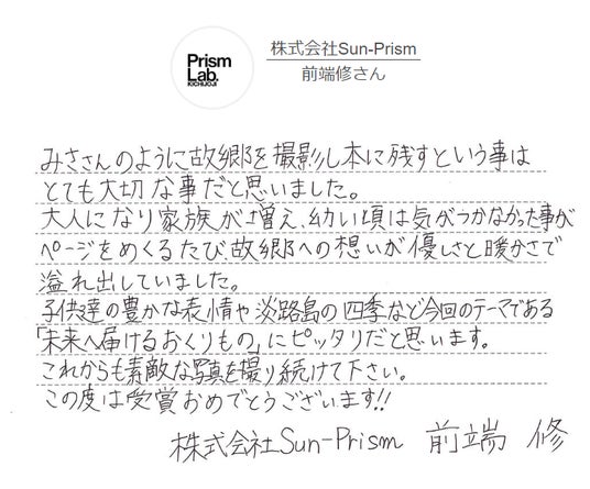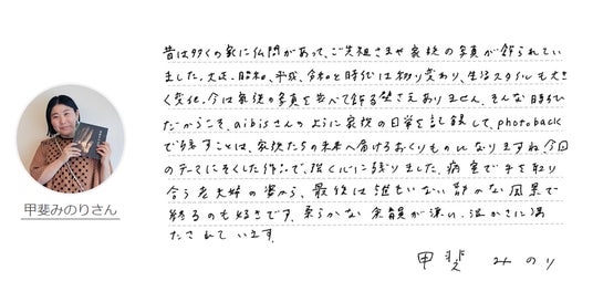 各審査員からのコメントは、「Photoback Award 2024」特設サイト(https://www.photoback.jp/contest/information/ )にて拡大表示でご覧いただけます。手書きコメントに加え、審査会のダイジェスト・審査員からの動画コメントも公開しておりますので、ぜひご覧ください。