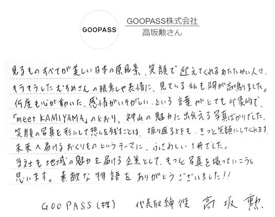 GOOPASS賞:「meet KAMIYAMA」作者:いしはら なつか さん