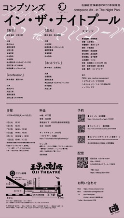 佐藤佐吉祭2022参加作品 コンプソンズ #9『イン・ザ・ナイトプール』が2022年4月5日 (火) 〜2022年4月10日 (日)に花まる学習会王子小劇場(東京都北区)にて上演されます。チケットはカンフェティ(運営:ロングランプランニング株式会社、東京都新宿区、代表取締役:榑松 大剛)にて2月26日(土)より発売開始です。