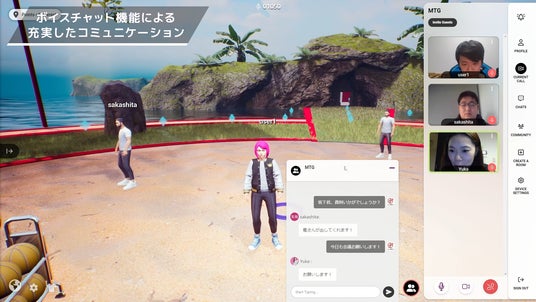 さらに、サイドバーから、テキストチャット、画面共有やビデオ通話機能等を利用することができ、ビジネスシーンにおいて必要不可欠な機能も豊富に取り揃えています。