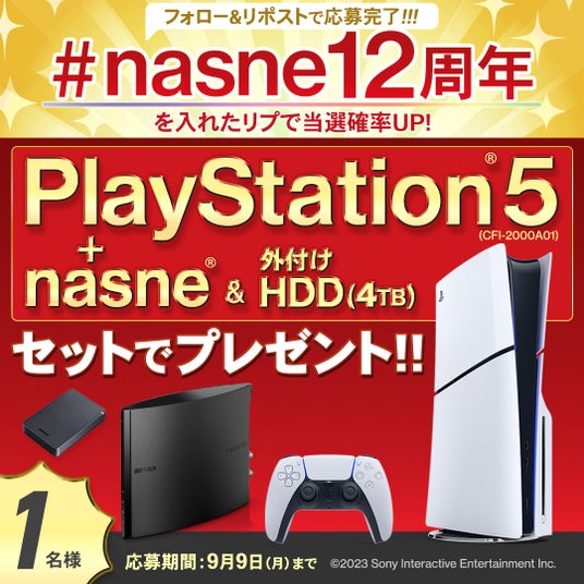 ※ハッシュタグ「#nasne12周年」を入れたリプライで当選確率が上がります。