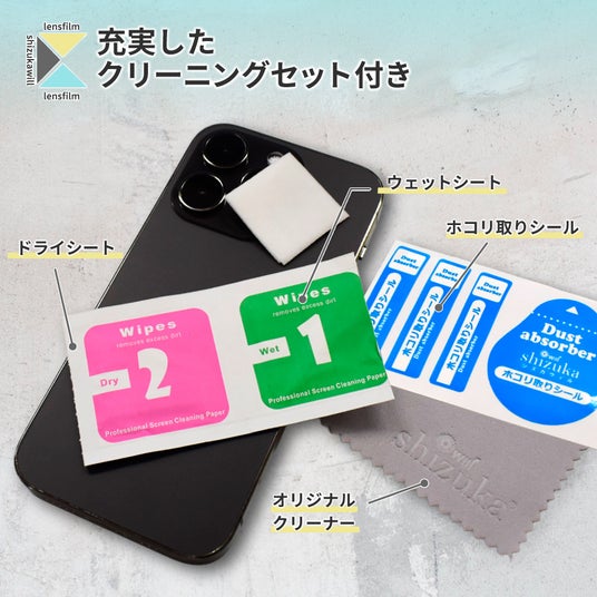 付属のクリーニングセットがついているので、万全の状態でフィルムを貼ることができます