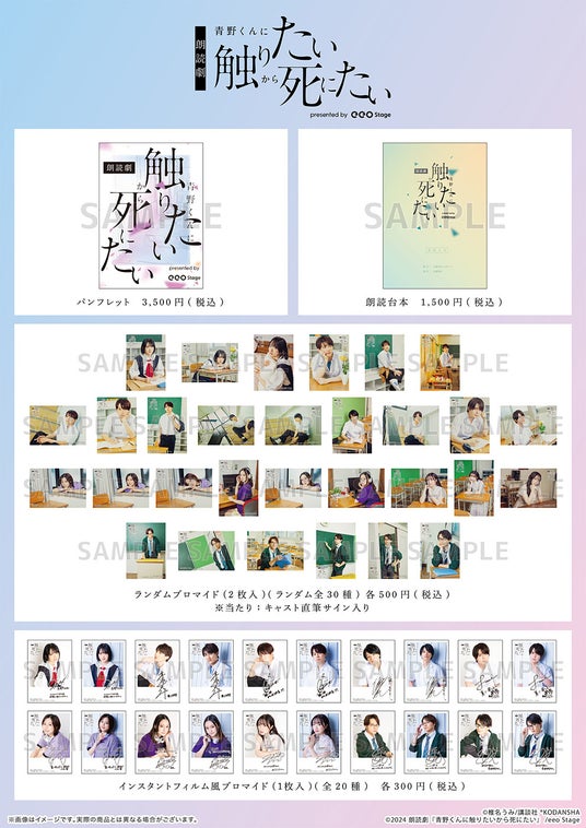 生駒里奈、赤澤遼太郎らメインキャストの撮り下ろしカットを使用!「朗読劇『青野くんに触りたいから死にたい』presented by eeo Stage」グッズ&公演記念品の発売が決定