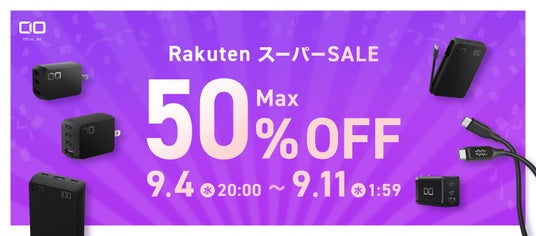 小型・高出力のモバイルバッテリー「SMARTCOBY」シリーズや、小型のGaN急速充電器「NovaPort」シリーズなどを展開する株式会社CIOは、「楽天スーパーセール」に、売れ筋製品や新商品を最大50%OFFにて販売いたします。(※1)