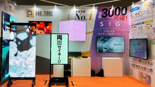会場では、プロテラスが提供するデジタルサイネージを体感いただくためのコンテンツをご用意させていただいております。