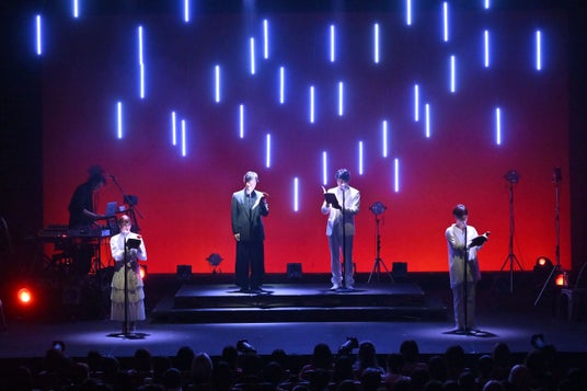 そんな物語に込められた想いを出演者たちが“声”で見ている方々へ伝える。朗読劇は、個々人のペースで読み進める小説や漫画でもなく、絵的な表現があるドラマやアニメでもなく、さらには体や表情の動きでも表現する舞台とも異なるもの。登場人物たちが置かれている状況や情景なども朗読・声で伝えるというのが、特長のひとつだろう。今回の登壇者たちは、登場人物それぞれの人生観が見えるような“声”の芝居を披露。兼ね役も多いなかではあったが、見事に演じ分けていた。