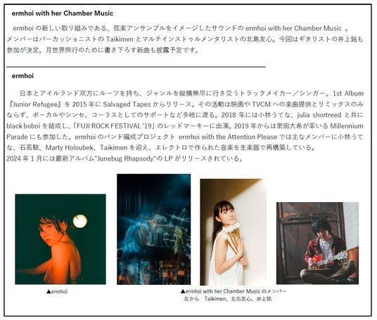 ※チケット販売開始日時以降に上記URLより特別チケット「【MUSIC】月世界四重奏 - ermhoi with her Chamber Music -」をご購入ください。