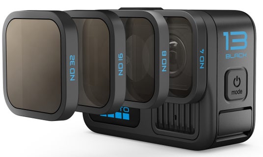 NDフィルター4枚パック (12,100円、税込):HBシリーズのNDフィルター (ND4 / ND8 / ND16 / ND32) を使用すると、シネマティックなモーションブラー効果を簡単に加えることができます。フィルターを取り付けるだけでHERO13 Blackが自動検出し、オートシネマティックビデオモードに切り替わり、環境に応じた最適な設定に調整されます。