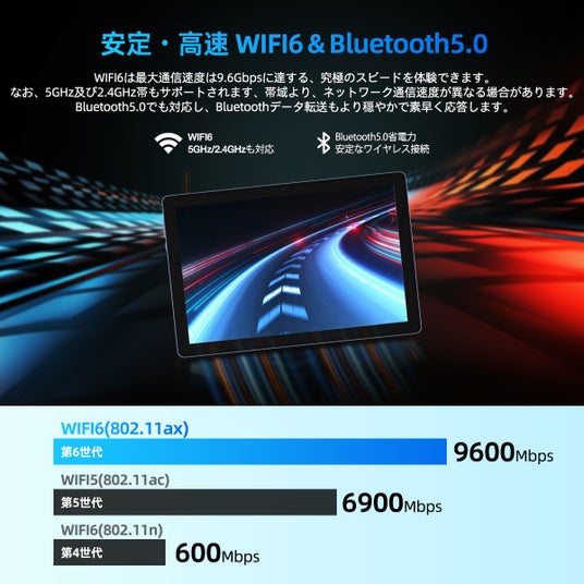 WIFI6のサポートにより、より高速で安定したインターネット接続が可能です。オンライン学習やリモートワークに最適な環境を提供し、どこでも快適に使用できます。また、軽量設計のため、持ち運びにも便利です。