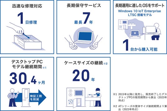 エプソンダイレクト社は1993年に設立し、高品質な自社ブランドのパソコン「Endeavor」シリーズを製造・販売しております。最短1日修理、最長7年の長期保守、有寿命保守サービスを提供しているほか、Windows 10 IoT Enterprise等の特定用途向け組み込みOS搭載モデルもご用意しております。