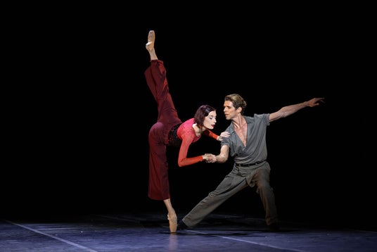 そしてBプロのハイライトが、ラヴェルの精密で魔術的な音楽をみごとに舞踊化した不朽の名作『ボレロ』。その主役、巨大な赤いテーブルの上で一人踊る“メロディ”は、かつてジョルジュ・ドンやシルヴィ・ギエムら名だたるスターによって踊られ、BBLの中でも一握りのダンサーしか踊れない役です。