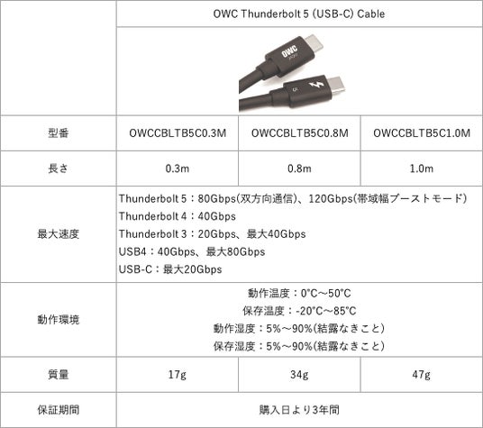 日本語サイト https://www.owcasia.jp/cables-adapters/owc-thunderbolt-5-cable