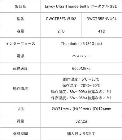 日本語サイト https://www.owcasia.jp/external-storage/owc-envoy-ultra