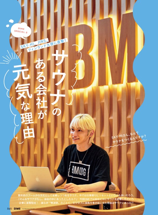 第二特集ではSKY-HIが率いるBSMGやJINSなど社内にサウナがある会社を直撃! チームビルディング、クリエイティビティ、リフレッシュなど、サウナがビジネスにどんな好影響をもたらすのか、サウナのある会社が元気な理由に迫ります。