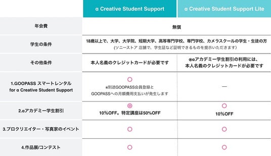 会員の学生は会員向けサービスとして、ソニーのカメラスクール『αアカデミー』で開催されるカメラの使い方から撮影技術の向上、編集をはじめとするさまざまな講座を会員価格で受講できるほか、プロのクリエイターや写真家から創作活動について直接話を聞くことができるトークショーなどのイベントへの参加が可能となります。