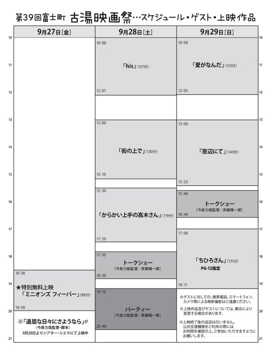 ※上映終了後の送迎は行いません。公共交通機関をご利用の際にはお時間を確認の上、ご参加いただきますようお願いいたします。