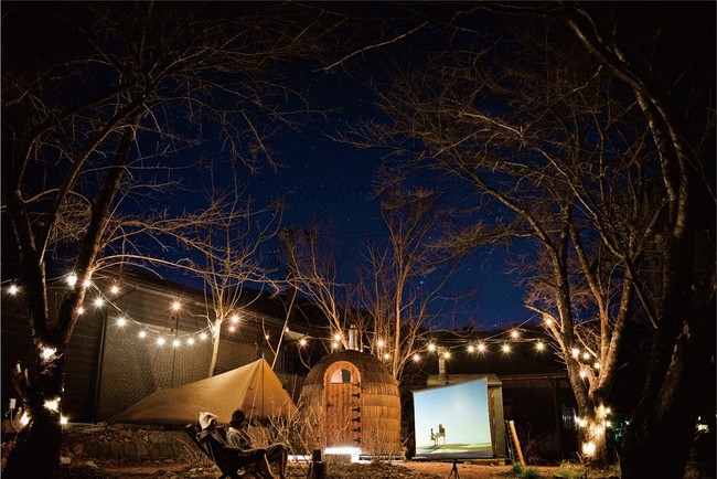 当日は「日本サウナ史」の著者である草g洋平さんら、インフルエンサーの皆様にご参加いただき、事前にヒアリングしたサウナシーンに合う映画”サ動画”や、アウトドアを楽しみながら見たい映画を投影しました。