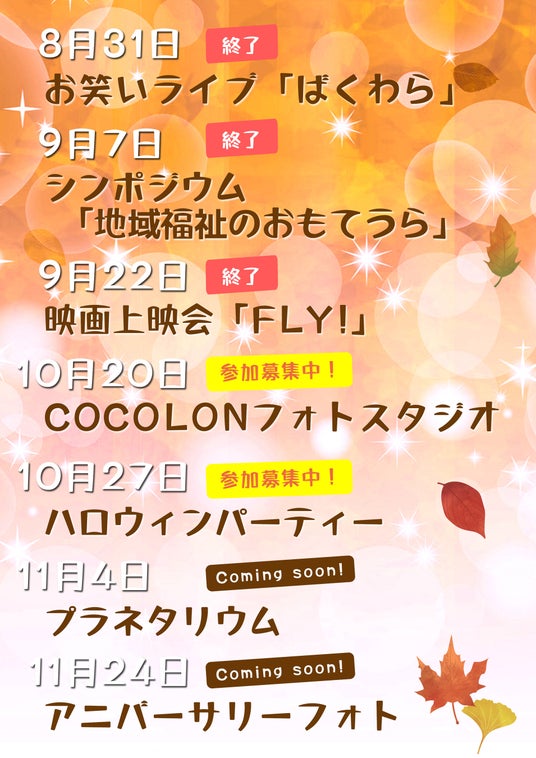 今秋のイベント予定