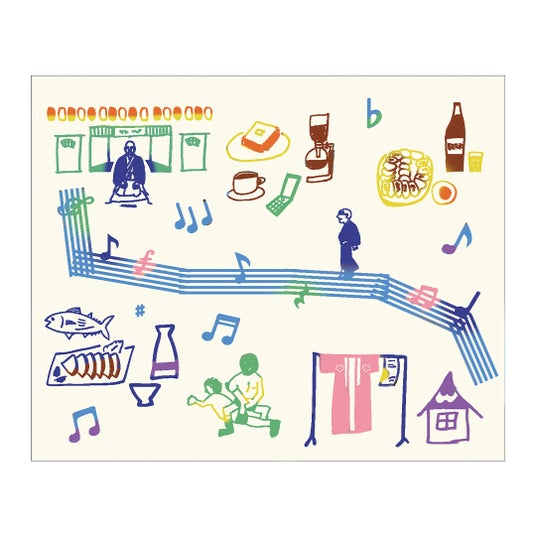 B(画像右):お散歩好きの一之輔が「落語は音楽みたい」と話したことから、五線譜を散歩道に見立てました。一之輔の好きなものと落語を詰め込んだ愛らしいデザインです。