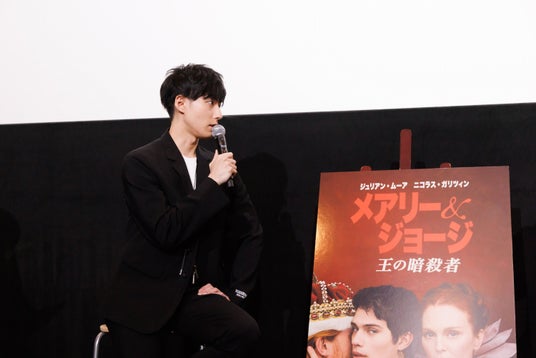 続いて、作品の内容について語るトークへ。本作ではインティマシー・コーディネーター(※性的な描写を撮影する際に現場に立ち会い、出演者と制作陣の意向を調整して、演者の尊厳を守りつつ効果的な演出につなげるサポートを行うスタッフ)も参加した大胆な性描写が話題となったが、 多くの愛人がいたと言われるジェームズ1世の人生を映像化するにあたり、セクシャルなシーンの撮影は役者とインティマ シー・コーディネーターが入念に話し合いを重ねたという。本作のインティマシー・コーディネーターを務めたロビー・テイラ ー・ハントは、ニコラスが出演する映画『赤と白とロイヤルブルー』も担当。2度目の共演にニコラスは大船に乗ったような気持ちで撮影ができたと明かしている。