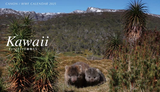 「キヤノン/WWF岩合光昭カレンダー2025 Kawaii〜オーストラリアの動物たち〜」には、世界的な動物写真家・岩合光昭氏により撮影されたオーストラリアの動物たちの姿が収められています。作品の撮影には、キヤノンのミラーレスカメラ「EOS R3」や交換レンズ「RF100-300mm F2.8 L IS USM」をはじめとするEOS R SYSTEMが使われています。本カレンダーはWWFジャパンが運営する通販サイト「PANDA SHOP」にて2024年10月1日より販売され、売上はWWFの地球環境保全活動に役立てられます。