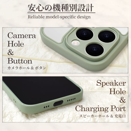 カメラボタン、充電口まで機種に合わせて作っており、