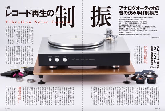 レコード再生の振動ノイズが出音にどれほど影響するものか、アナログファンは痛いほど知っています。セッティングの際に振動対策にしのぎを削り、プレーヤーシステムを構成するあらゆるアイテムには万全な振動対策がなされます。本特集では、そんな十人十色、考え方もさまざまな制振へのアプローチにフォーカス。機器のセッティング、プレーヤー設計、そしてターンテーブルシートやスタビライザーによるレコード盤の制振、評論家による実践など、多様な角度から制振の手法と理論を取り上げるとともに、効果のほどをチェックしてみました。