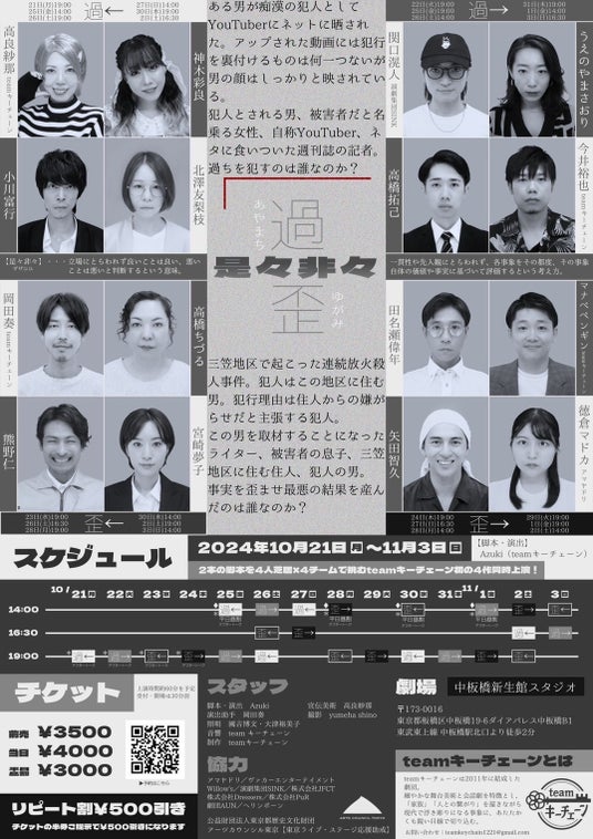 【インタビュー】 独自の視点で演劇を作り続けるteamキーチェーン1年ぶりの最新作 曖昧な価値観を見せる実験的公演 観た人の「是々非々」を問う作品