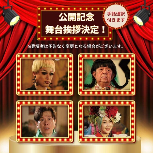 東ちづる(俳優)、ドリアン・ロロブリジーダ(ト゛ラァク゛クイーン)、 マメ山田(俳優)三ツ矢雄二(声優)、齊藤雄基監督 予定