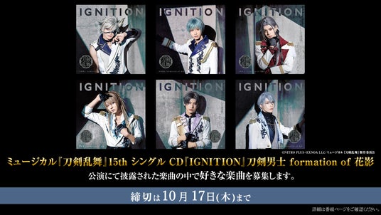 「15th シングルCD『IGNITION』刀剣男士 formation of 花影」の楽曲の中で好きな楽曲をユーザーの皆さまから募集します。