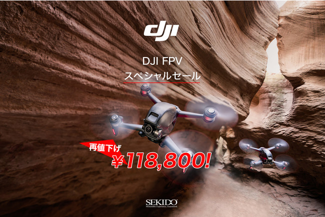 日本初のDJI正規販売代理店である株式会社セキド(本社:東京都港区、代表取締役:大下貴之)では、3月4日(金)より4K対応高性能小型FPVドローン「DJI FPV(ディージェーアイ エフピーブイ)」が、さらにお買い得な最大 45,760円OFFとなる「DJI FPV スペシャルセール」を開始いたしました。DJI FPV 単品に加えて、長時間のフライトに欠かせない予備バッテリーや移動や保管時のトラブルから守る専用ハードケース、4K撮影でも安心なSanDisk製高速書込み対応SDカード、直感的操作が可能なモーションコントローラーなどを合わせた、お買い得なオリジナルセットもセール対象となりますので、ぜひこの機会にお求めください。
