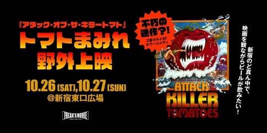 セレクトショップ【FREAK’S STORE(フリークス ストア)】を運営する株式会社デイトナ・インターナショナルによる映像事業「FREAK'S MOVIE(フリークス ムービー)」は、10月26日(土)・27日(日)の2日間限定で『アタック・オブ・ザ・キラートマト』の野外上映会を新宿東口広場にて開催します。