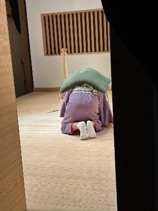 笑福亭鶴笑さんに習った型で、座布団を頭にかぶって「うわばみ」(巨大な蛇)の腹の中にいる様子を熱演。