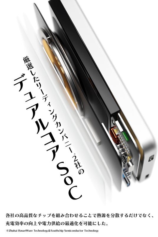 また、バッテリー制御には「Zhuhai iSmartWare Technology」&「Southchip Semiconductor Technology」二社のデュアルコアSoCを採用。