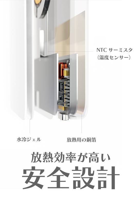 - 優れた放熱設計:銅箔、水冷ジェル、マグネシウム・アルミ合金の3層構造で効率的に放熱。充電時の熱を効果的に管理し、安全性が高い。