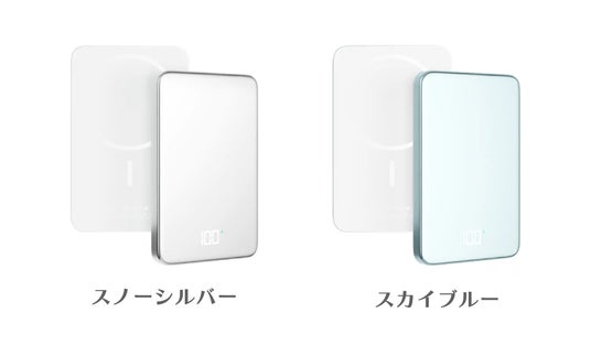 また、モバイルバッテリーとしては大変珍しい、爽やかな色味のスカイブルーの2種類。