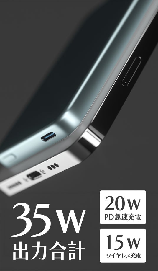 - 高速充電対応:MagSafe対応のワイヤレス充電と、USB Type-Cによる有線充電の両方に対応。合計35Wの充電出力で、最大2台のデバイスを同時に充電可能。