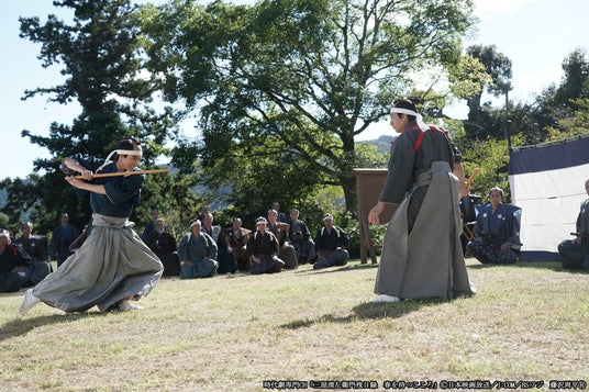 北大路欣也演じる清左衛門が温かく真っすぐな笑みをたたえています。絶えず美しく、力強く流れ続ける滝の水のように、本作では、清左衛門と青年剣士・信次郎(藤岡真威人)や物語の鍵を握る巫女・照日(大友花恋)との交流を通じて「揺るがない想い」や「受け継がれる武士の生き方」「若さのきらめき」が描かれます。