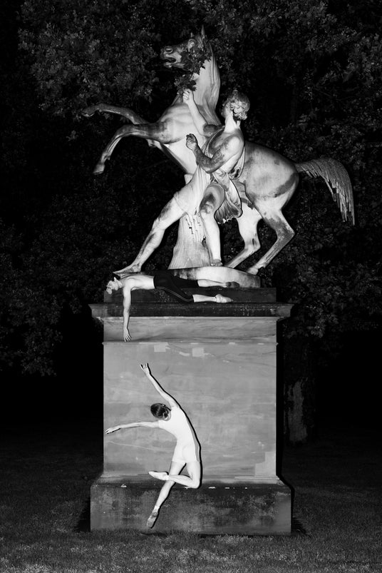本展では、劇場から誘い出されたダンサーたちが夜の街を舞台に舞い踊り、戯れる姿をとらえたスナップショット作品のシリーズから厳選された15点を展示します。