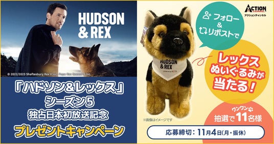 あの賢くて愛らしいワンコ刑事の活躍を、アクションチャンネルで見よう!もふもふのレックスのぬいぐるみが当たるプレゼントキャンペーンも実施中