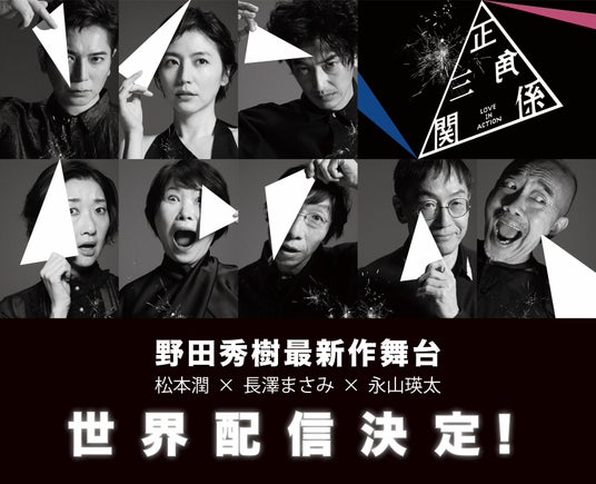 松本潤×長澤まさみ×永山瑛太、舞台初競演!野田秀樹新作舞台『正三角関係』世界配信決定!